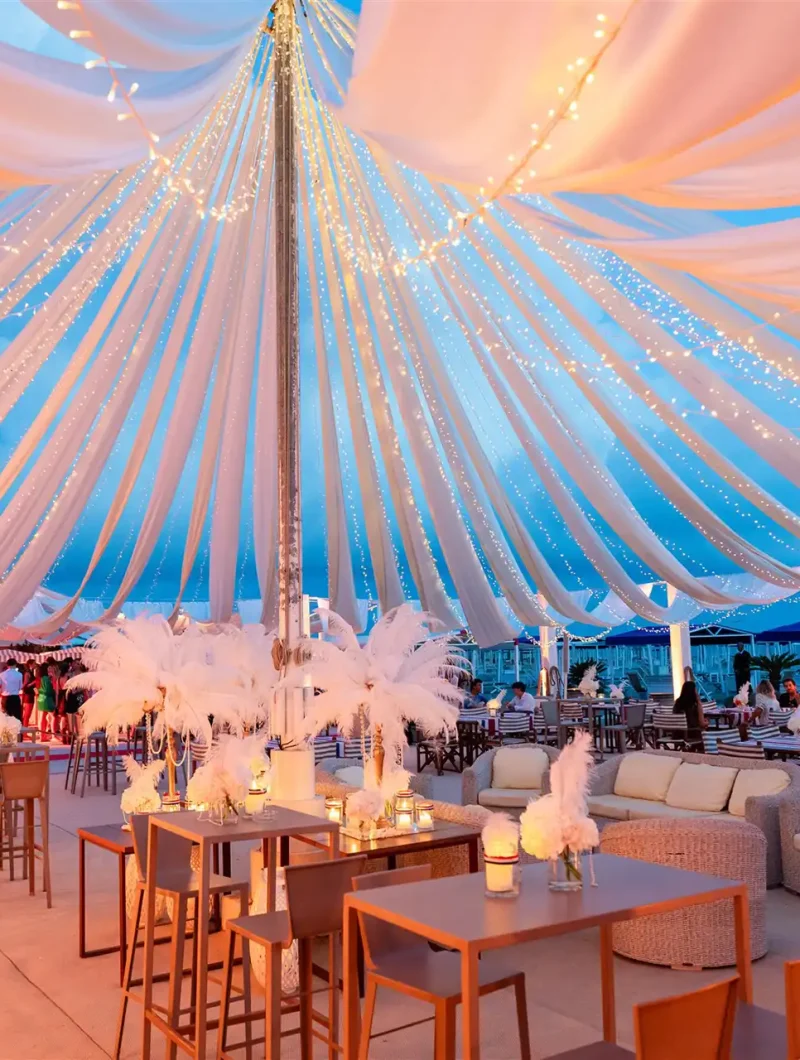 Every event is meticulously planned in every detail, with tailor-made solutions to ensure comfort, privacy, and an exclusive experience on the Versilia seaside.
