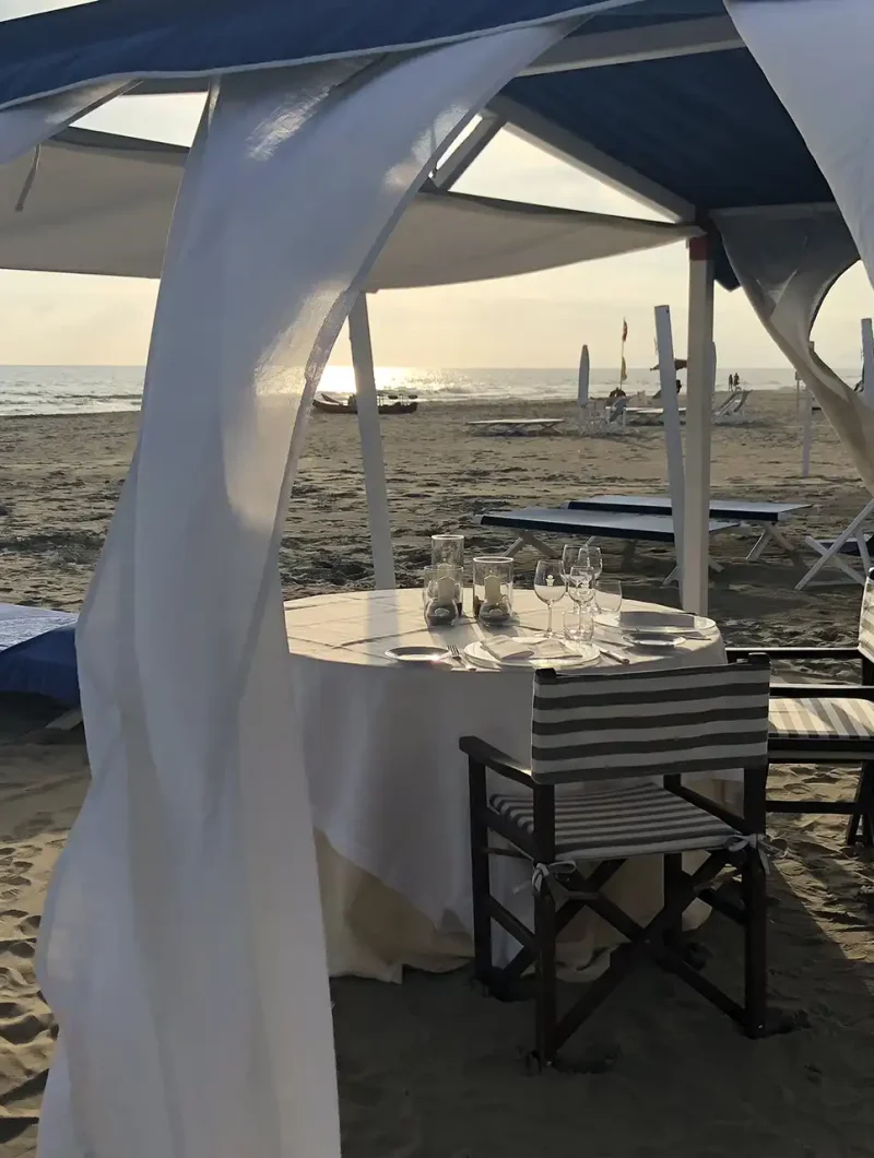 A unique location for an exclusive dinner under the tent on the beach in Forte dei Marmi, with a 5 stars service for a special candlelit dinner.